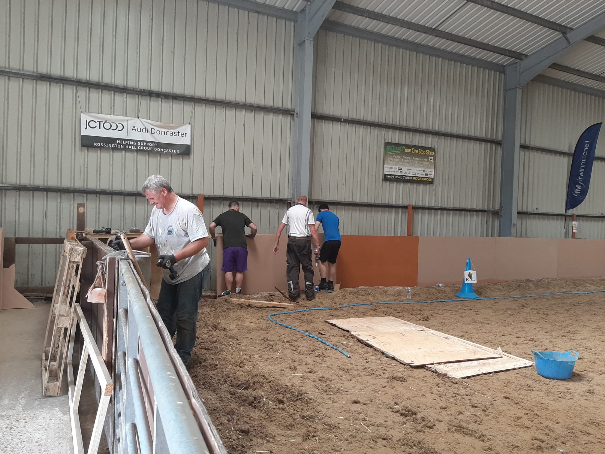 In 2024 the arena underwent a much-needed facelift. A lot of the kickboards were rotting and looked a bit tatty, plus we needed to make it safer for our riders by increasing the height of them. Tickhill Lions paid for the timber, so thanks to them and a lot of hard work by volunteers, both Lions and RDA, we were able to get this done.